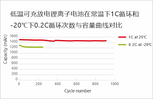 -20℃低溫0.5C充電,且充放電循環(huán)300周以上