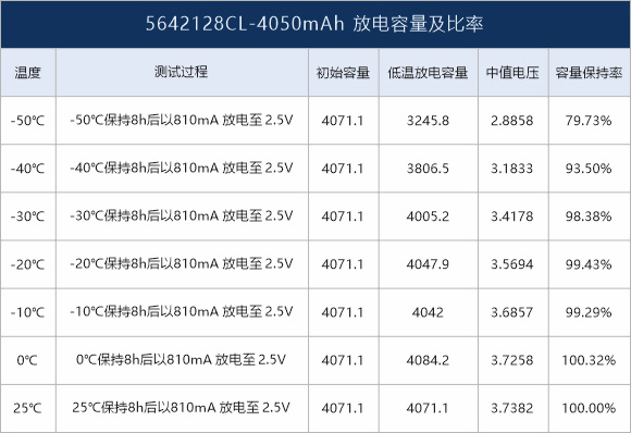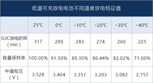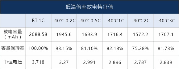-50℃低溫放電,75%以上容量保持率